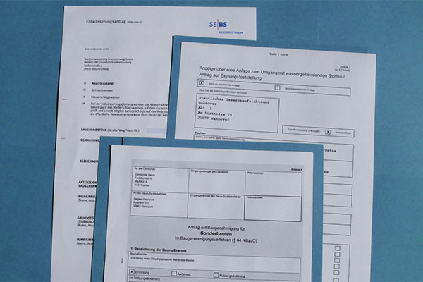 Alle notwendigen Anträge mit Anlagen, Plänen und Nachweisen werden von uns erarbeitet und im laufenden Genehmigungsverfahren verfolgt: Zum Beispiel mahnen wir Genehmigungen bei den Behörden an, reichen Erläuterungen und eventuell zusätzliche Unterlagen ein.